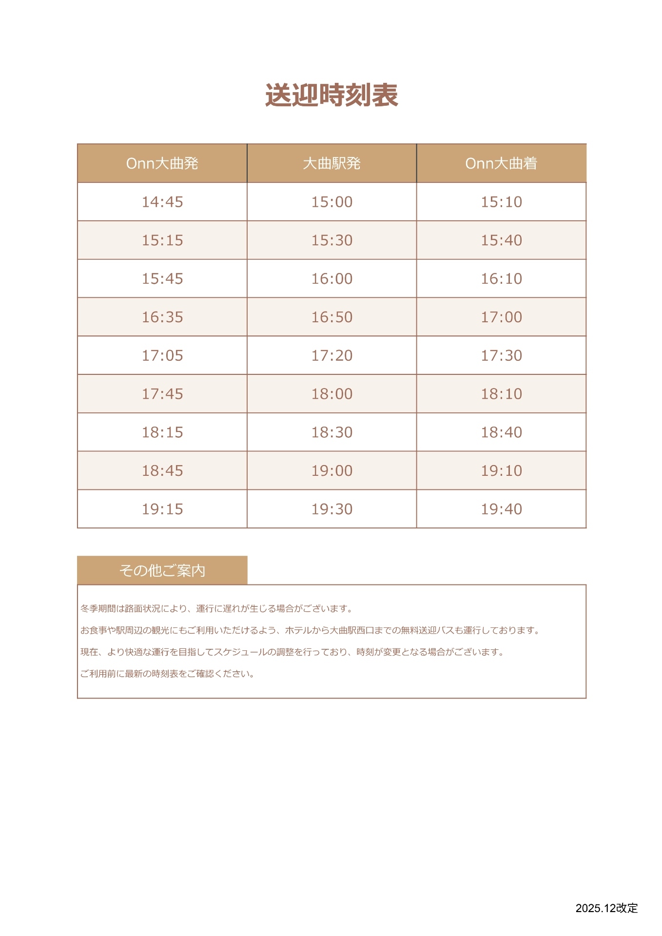 【送迎バス】時刻表変更のお知らせ/2025.12~